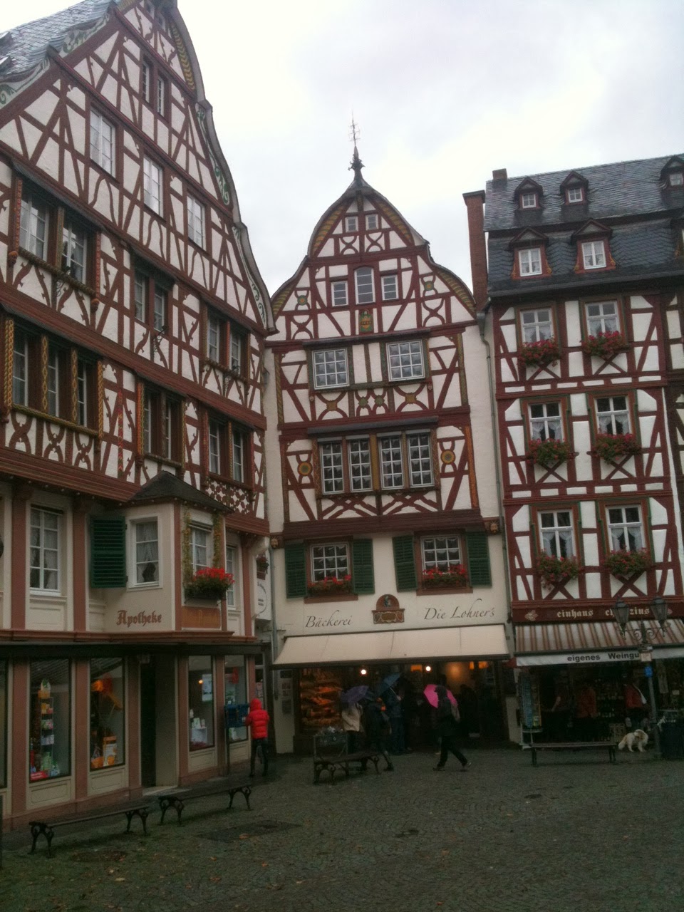 Bernkastel-Kues es un encantador pueblo alemán en el valle del río Mosela. Se encuentra en una región dedicada al vino, con hermosos paisajes jalonados de viñedos. Literalmente, es lo más parecido a un lugar de cuento de hadas con sus casas de construcciones entramadas y sus encantadoras plazas. Yo he quedado atrapada por la zona y siento mucho no haber llevado una cámara, sino un teléfono que hacia las veces de cámara, pero sin los mismos resultados.